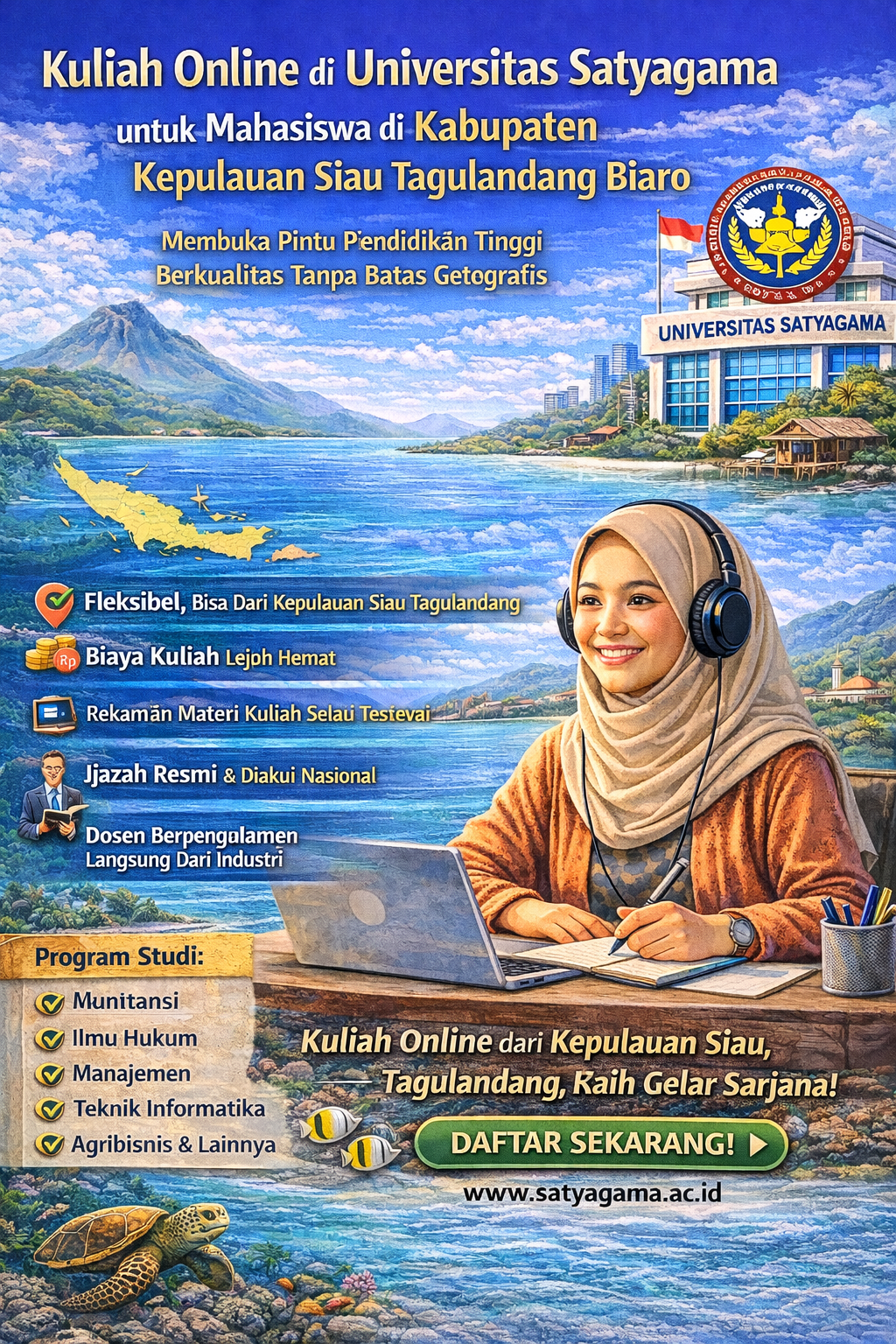 Kuliah Online di Universitas Satyagama untuk Mahasiswa di Kabupaten Kepulauan Siau Tagulandang Biaro