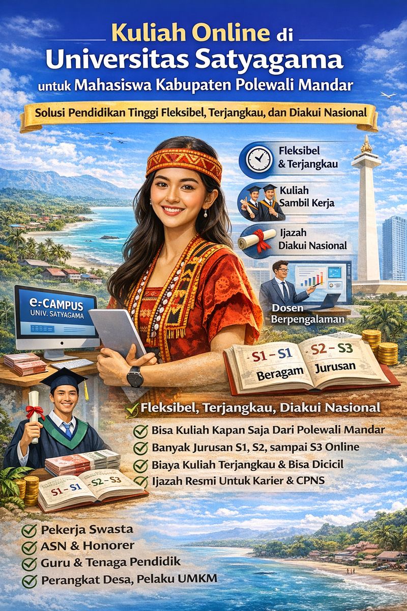 Kuliah Online Universitas Satyagama untuk Mahasiswa Kabupaten Polewali Mandar: Solusi Pendidikan Tinggi Fleksibel, Terjangkau, dan Diakui Nasional